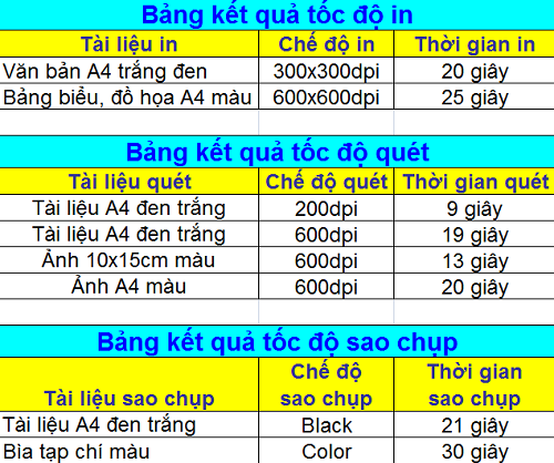 Kết quả thử nghiệm tốc độ của máy in Canon imageCLASS MF628Cw.