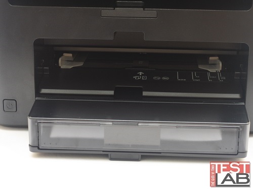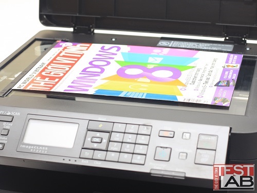 Một điểm cộng nữa của máy in MF221d mà Test Lab nhận thấy là nút nguồn được bố trí ở mặt trước, khá thuận tiện cho người dùng khi cần thao tác bật/tắt máy mà không cần phải nhoài người ra phía sau để thực hiện như một số mẫu máy in văn phòng khác. Để phục vụ cho chức năng quét và sao chụp, MF221d trang bị khay kính phẳng nên chỉ phù hợp để quét tài liệu, hình ảnh dạng tờ hay dạng sách, trong khi người dùng có nhu cầu quét xấp tài liệu nhiều tờ có lẽ sẽ cần nhiều thời gian và thao tác tự làm bằng tay hơn.